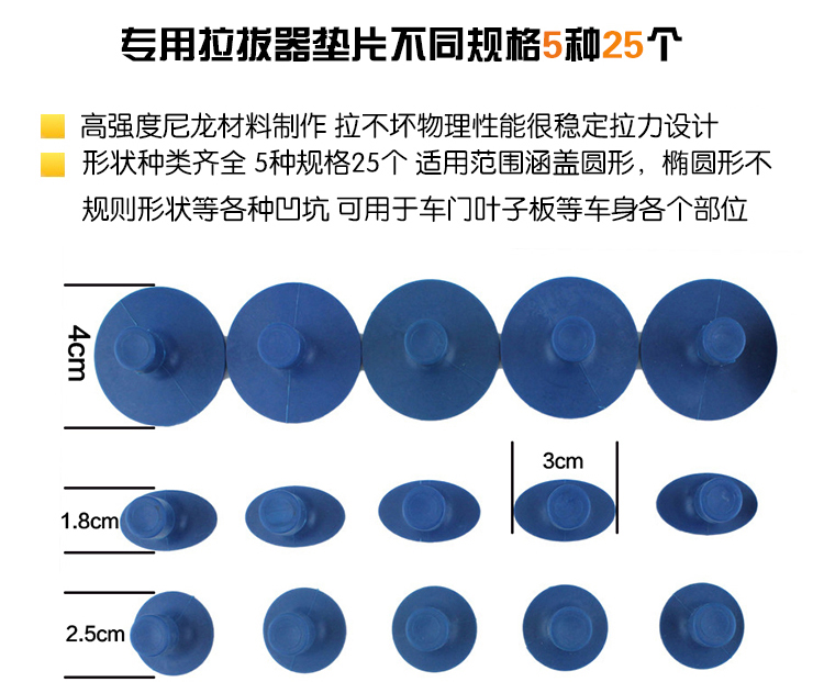 專用型免噴漆凹陷修復工具,采用進口無碳錳鋼材質頂鉤,36種型號,能夠滿足各種形狀的凹陷部位進行修復。工具具有極強的彈性和韌性,表面電鍍處理,長桿鑄鋁把手設計,符合人體力學,操作更加順手。